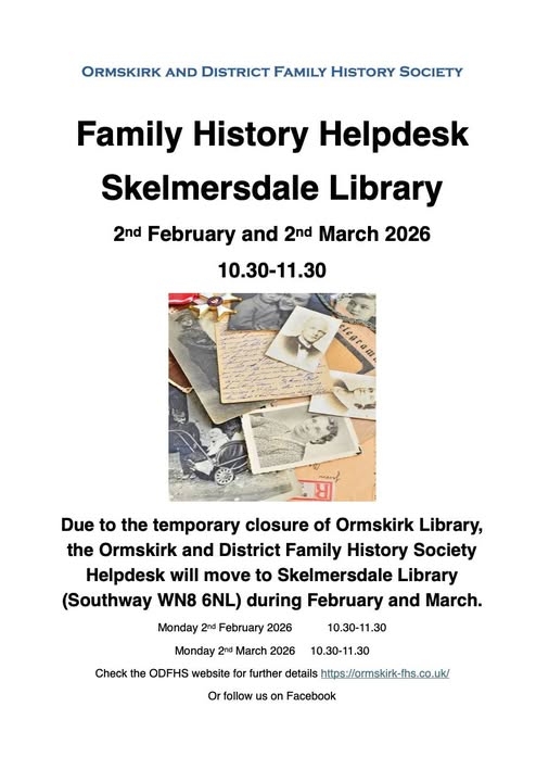 Due to the temporary closure of Ormskirk Library, you’ll be able to find our knowledgeable volunteers at Skelmersdale Library instead.
