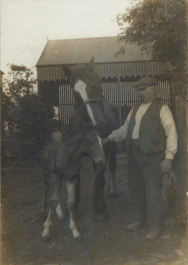 William Rothwell is James’ father. Known as “Brogie”. Born in Aughton in 1828; eldest child of John Rothwell and Margaret Howard.  Married Margaret Hodge on 24 December 1850 at St. Peter’s, Liverpool. He was a farmer, and lived at Smithy Lane, Gaw Hill Lane and Turnpike Road, Aughton. I am told that this picture of him in front of the house was taken near the weighbridge at Aughton. He died on 11 February 1902 at Mill Farm, Holborn Hill, Aughton. (The other notable thing about this photo is that it was signed “John H. Smith” on the back, and dated 21 January 1890.)