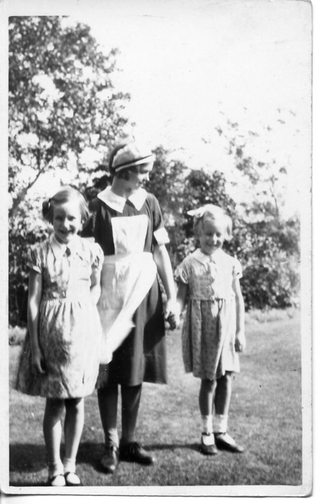 Sarah Norris with grandchildren Alan & Jean Cooper, in Alty’s Lane ca. 1948