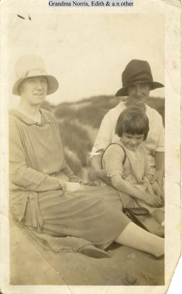 Sarah Norris (on right) with daughter Edith and A.N. Other. Date unknown, but probably late-1920s?