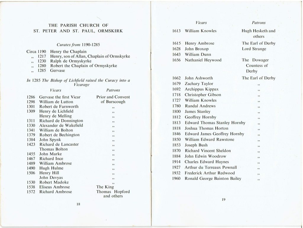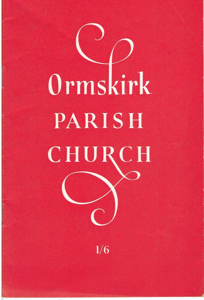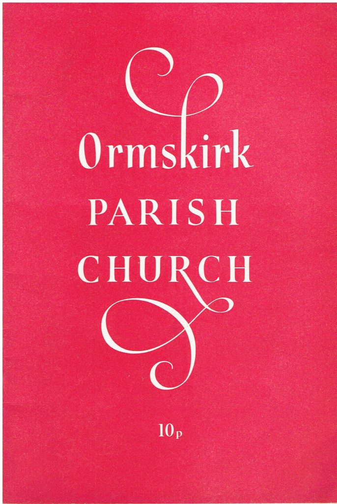 “We are indebted for the text of this history to my predecessor, Canon R.G.B. Bailey.  It has now been de-designed, revised and re-printed in the hope that it will help both parishoners and visitors to Ormskirk to appreciate the treasures that we have inherited from the labours of christian people in the past.  May it also serve to remind us all of the needs and opportunities of the present.”